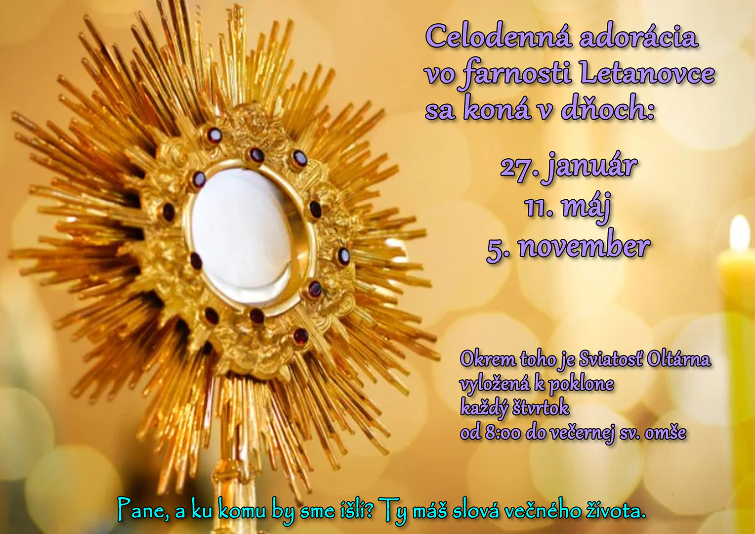 V našej farnosti budú celodenné diecézne adorácie: 27. januára, 11. mája a 5. novembra.